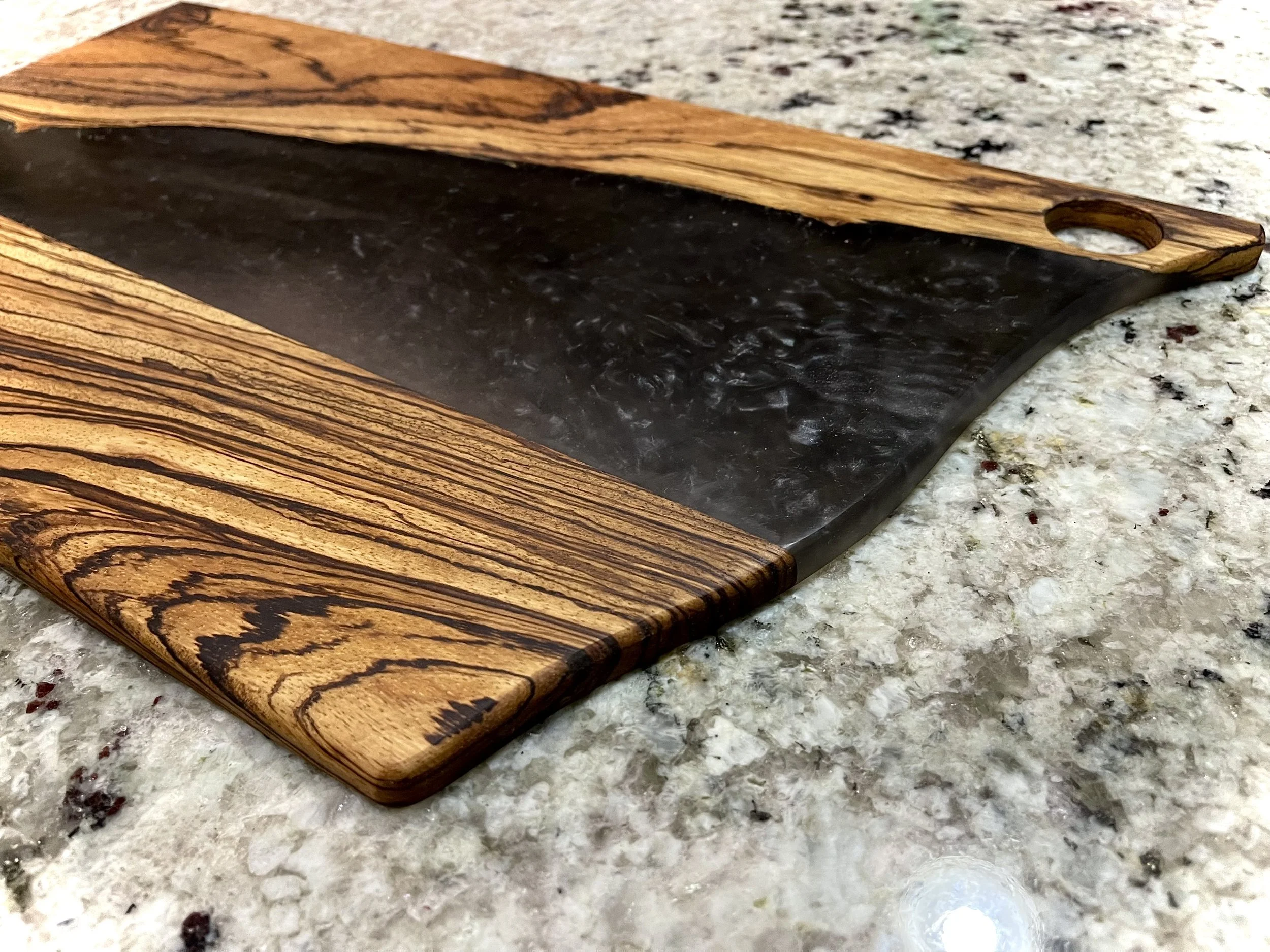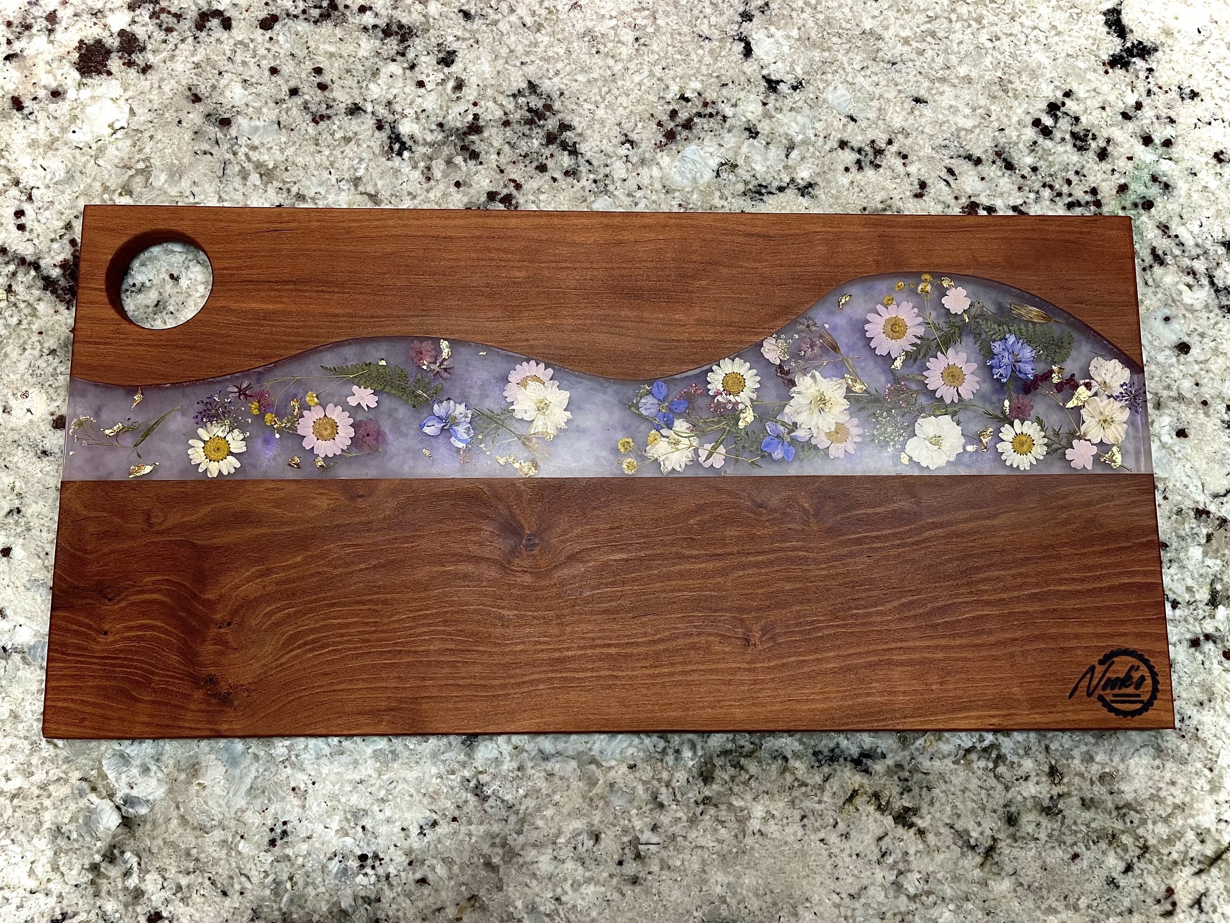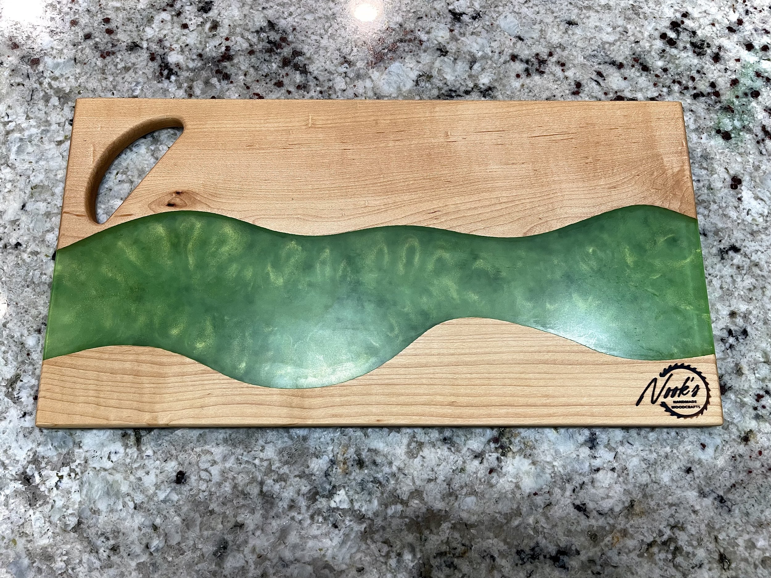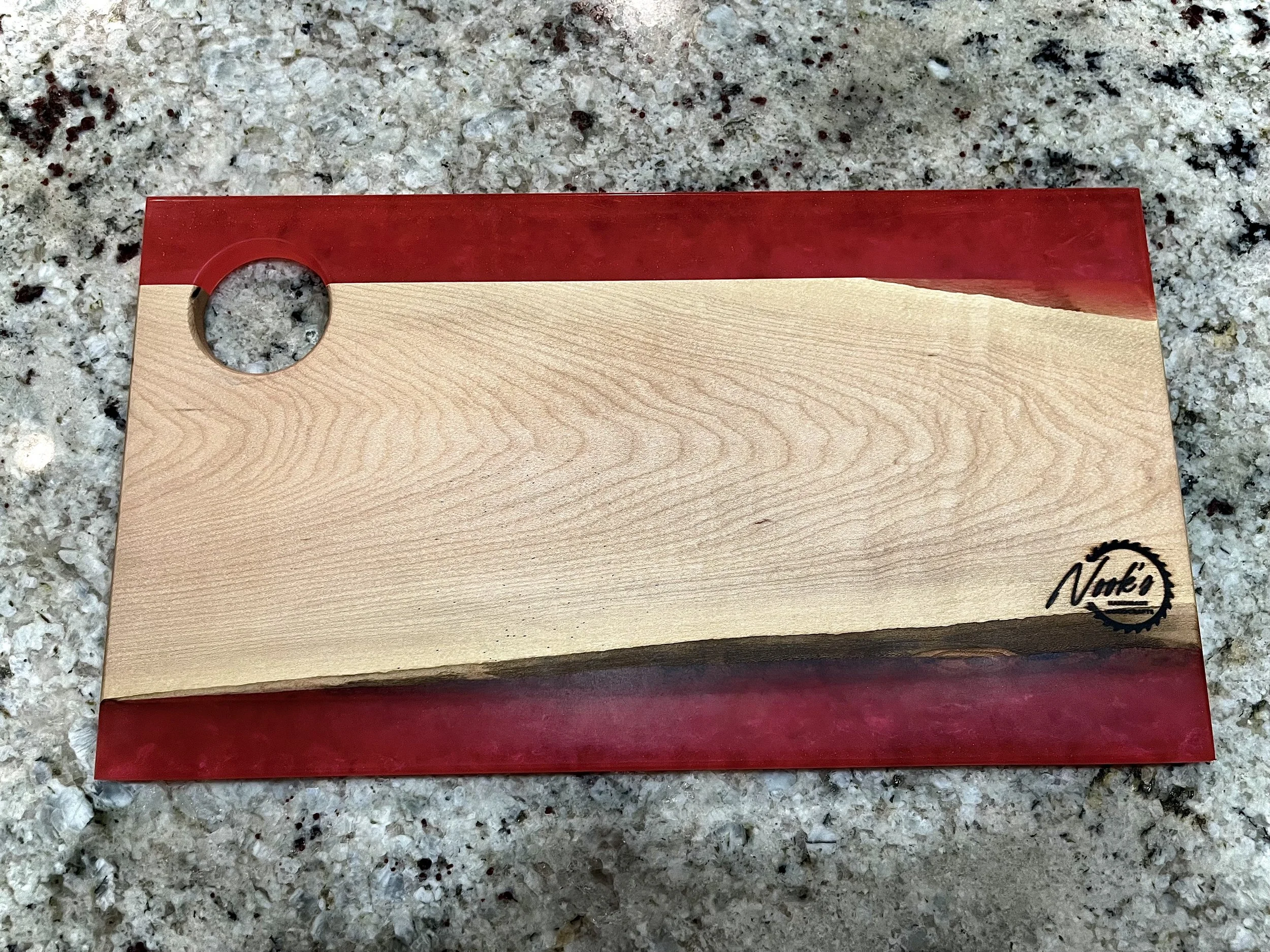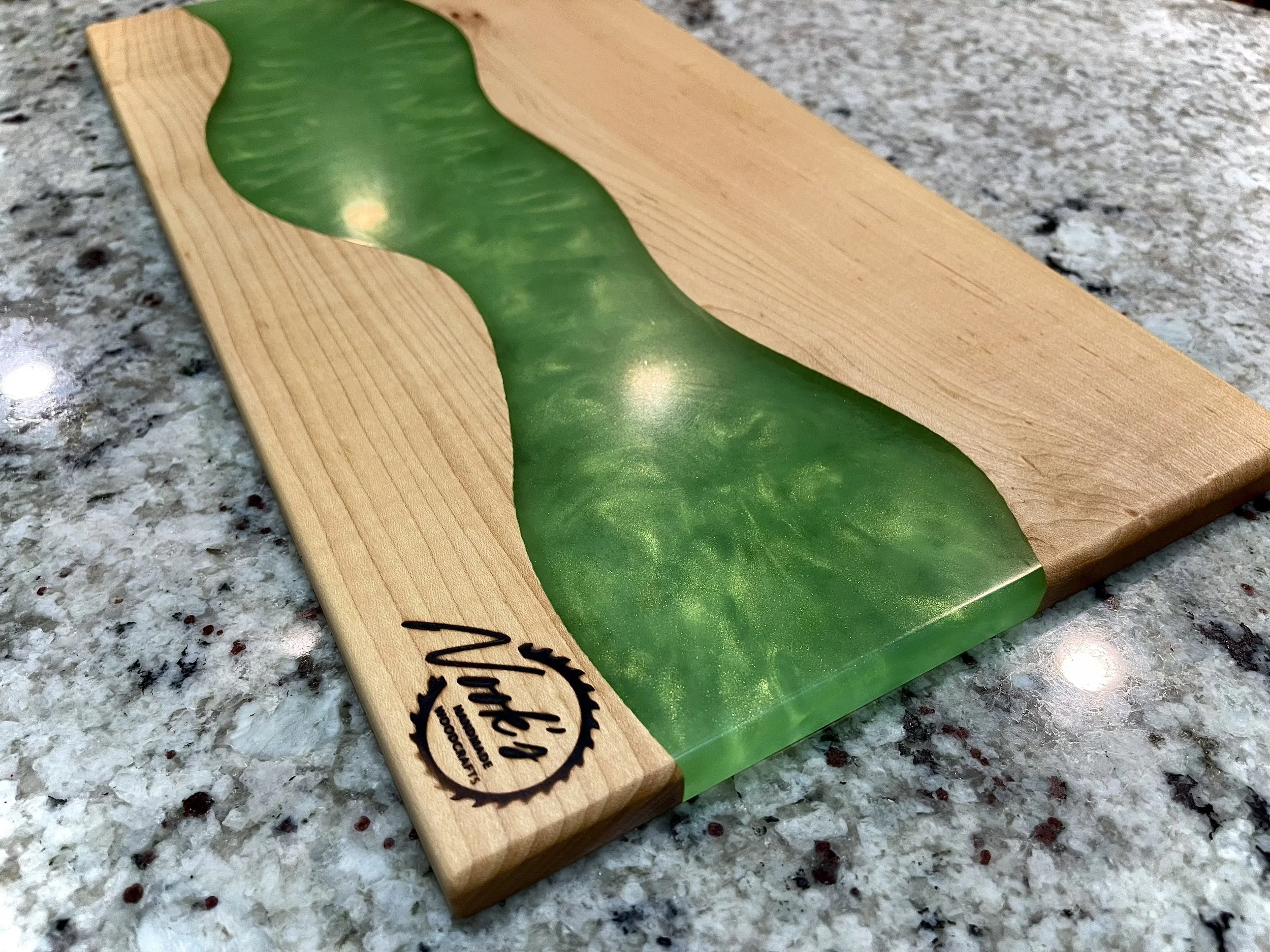 Host your next dinner party in fashion with this high-quality charcuterie board made from hardwood and epoxy resin.