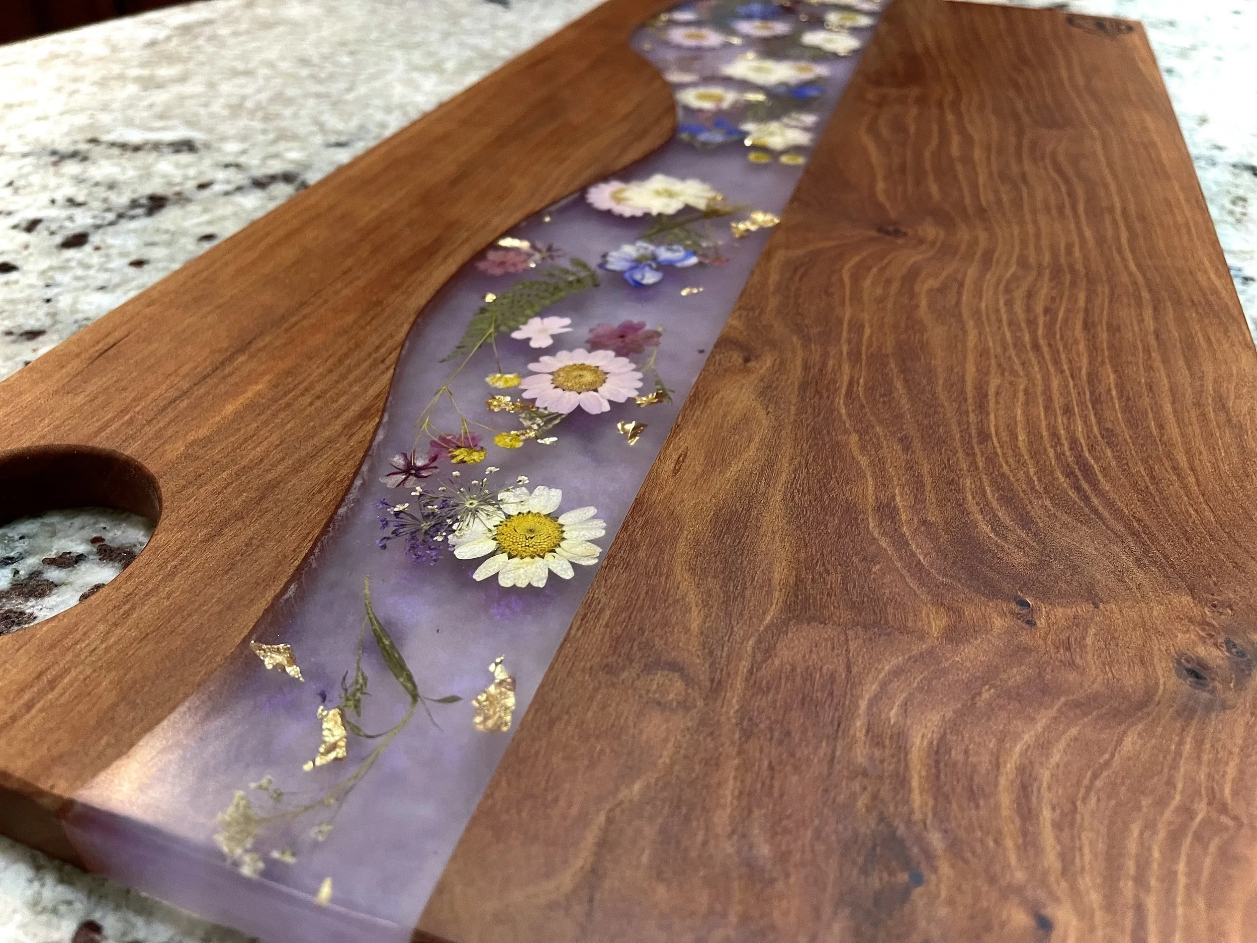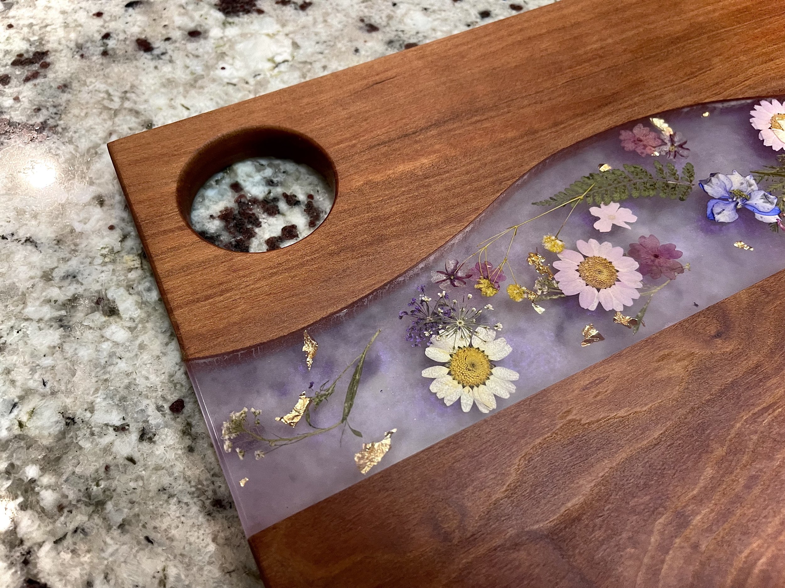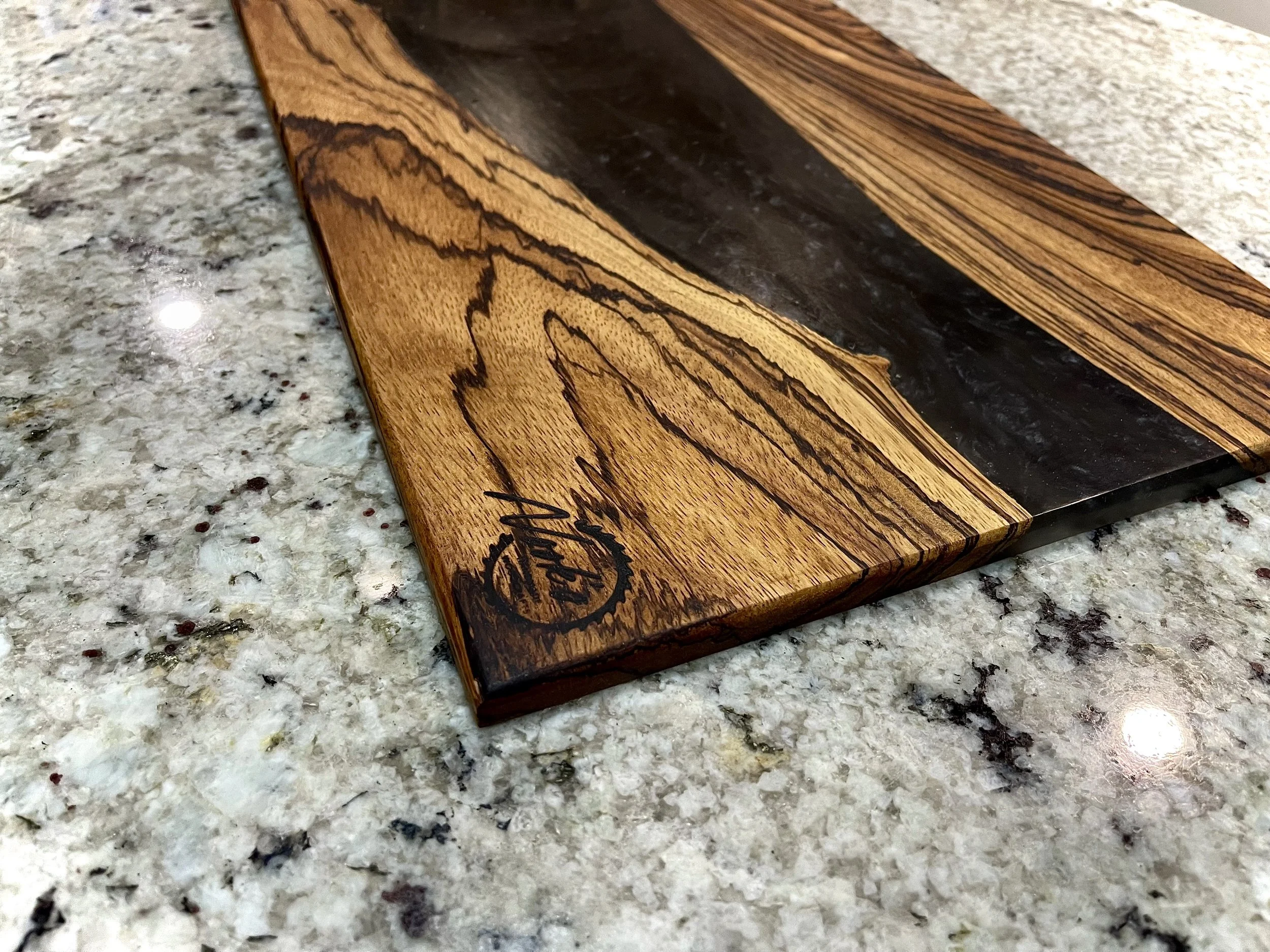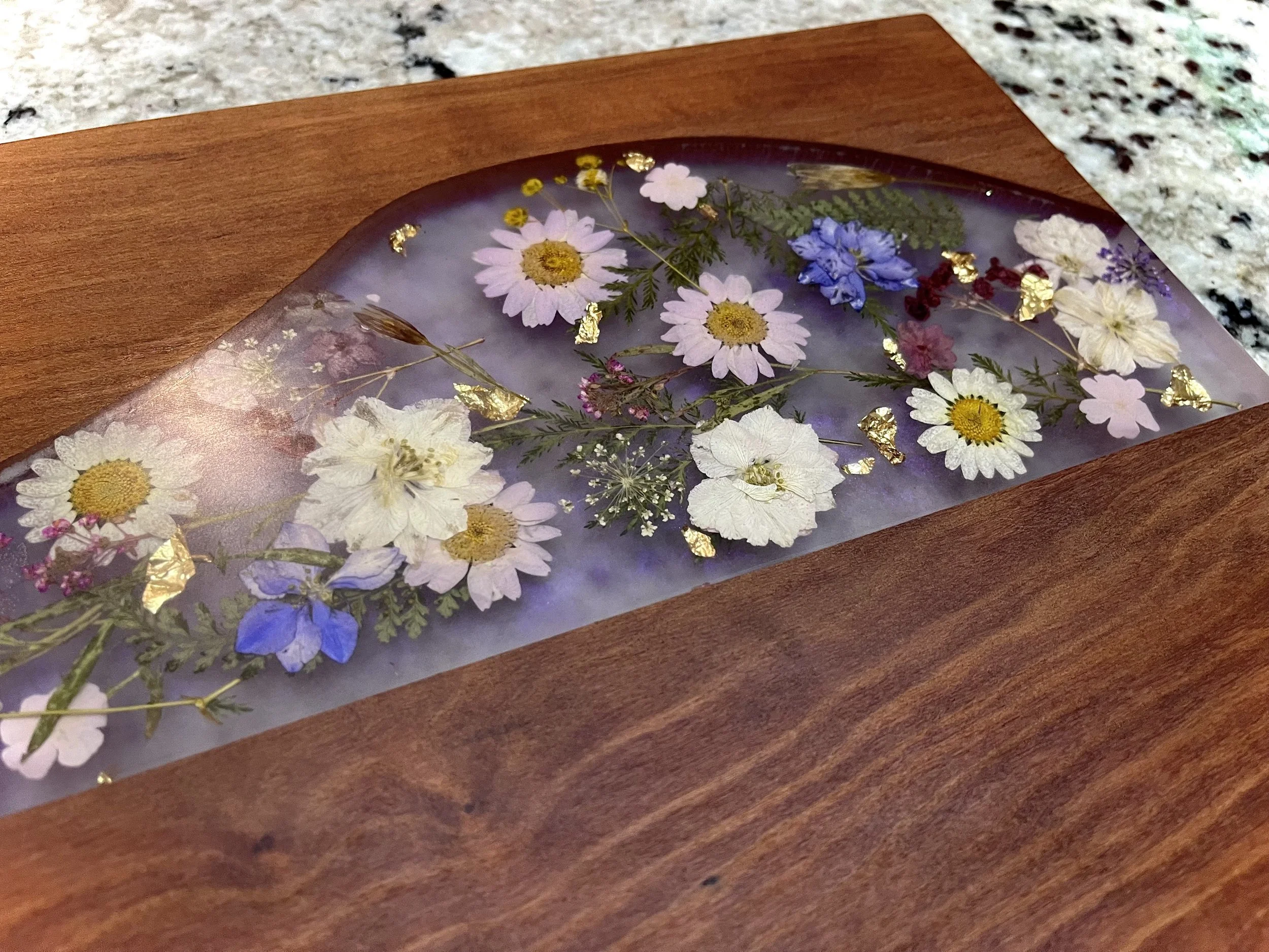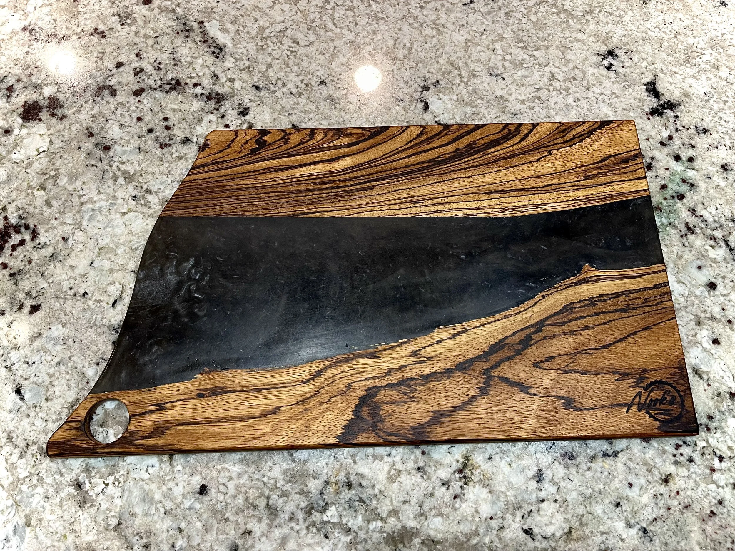 Host your next dinner party in fashion with this high-quality charcuterie board made from hardwood and epoxy resin.