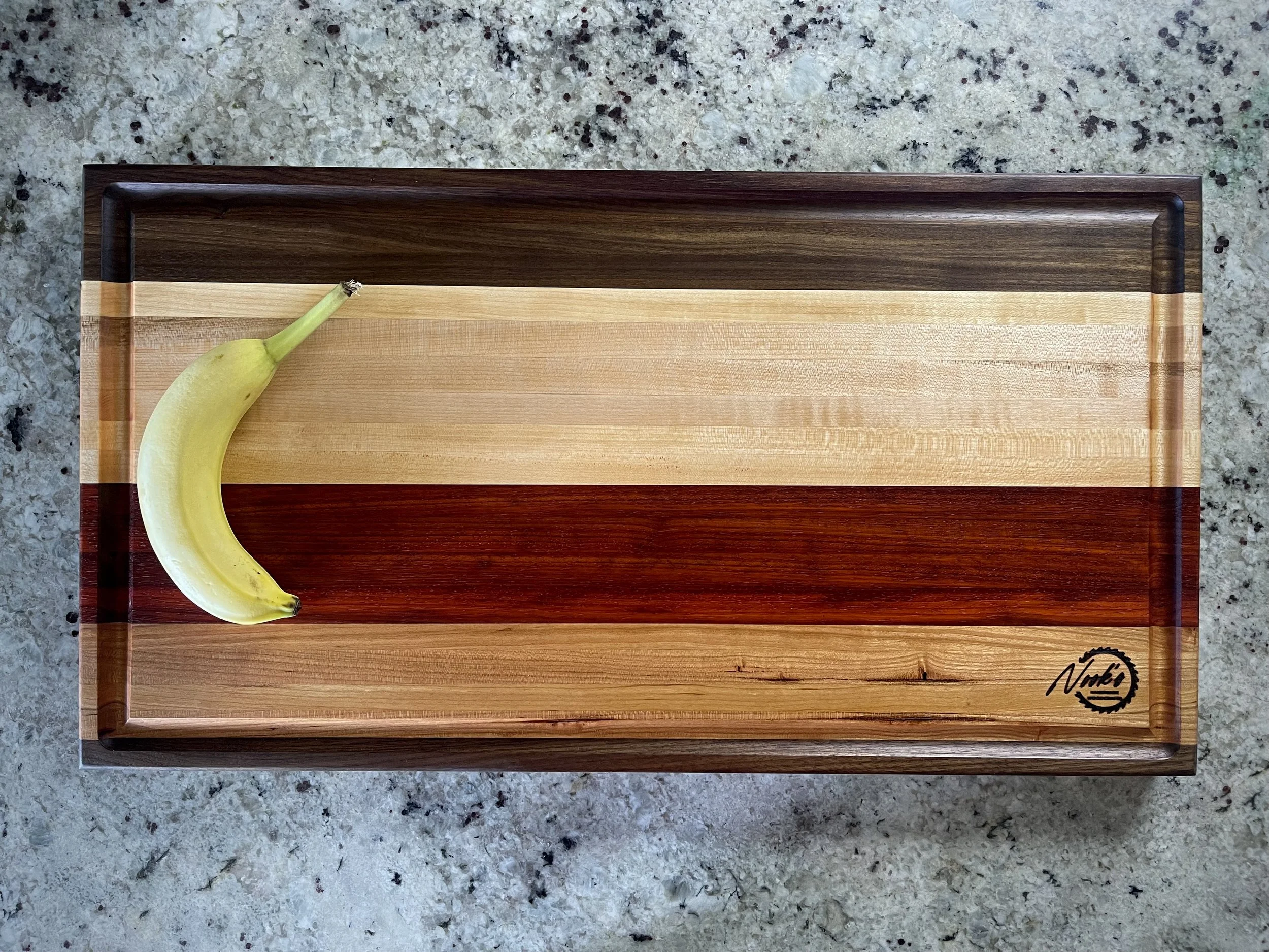 We offer 3 standard sizes of cutting boards—small, medium, and large. Each size will fit different needs and purposes. If you’re looking for a different size or other custom options (see below), we’ll be glad to work with you to create a custom size to fit your needs.